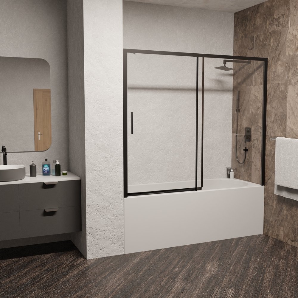 Шторка на ванну RGW (РГВ) 90х150 см SC-151-B Черный, Прозрачное, 8 мм Easy Clean (351115109-14)