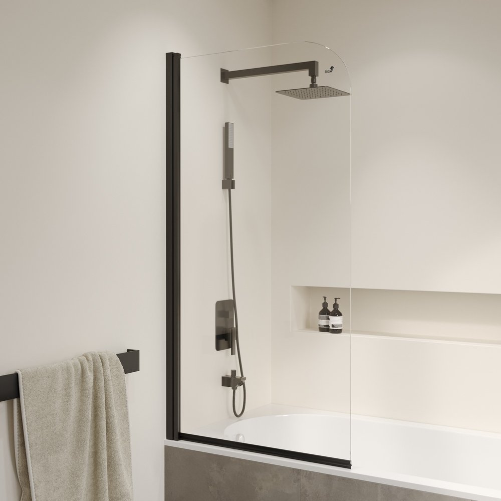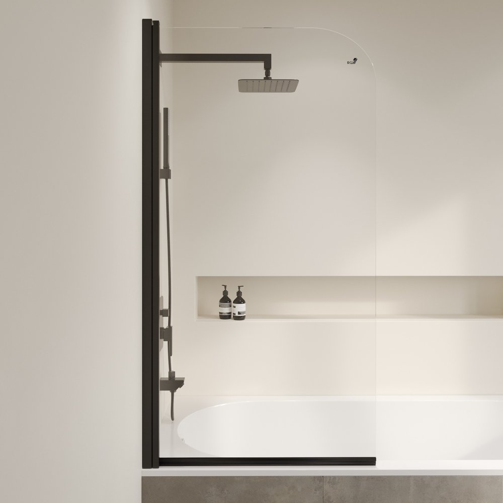 Шторка на ванну RGW (РГВ) 90х150 см SC-151-B Черный, Прозрачное, 8 мм Easy Clean (351115109-14)
