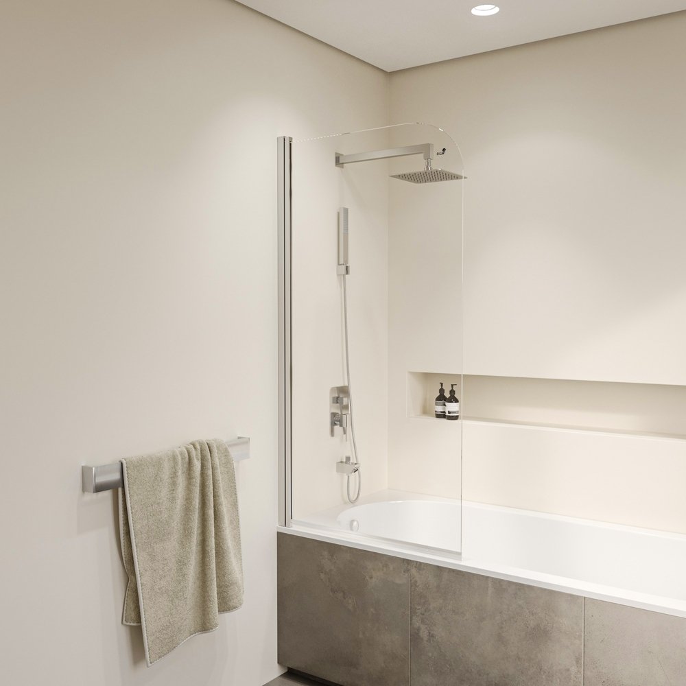 Шторка на ванну маятниковая. Толщина закаленного, безопасного стекла 6 мм. Функция подъема стекла с доводчиком.