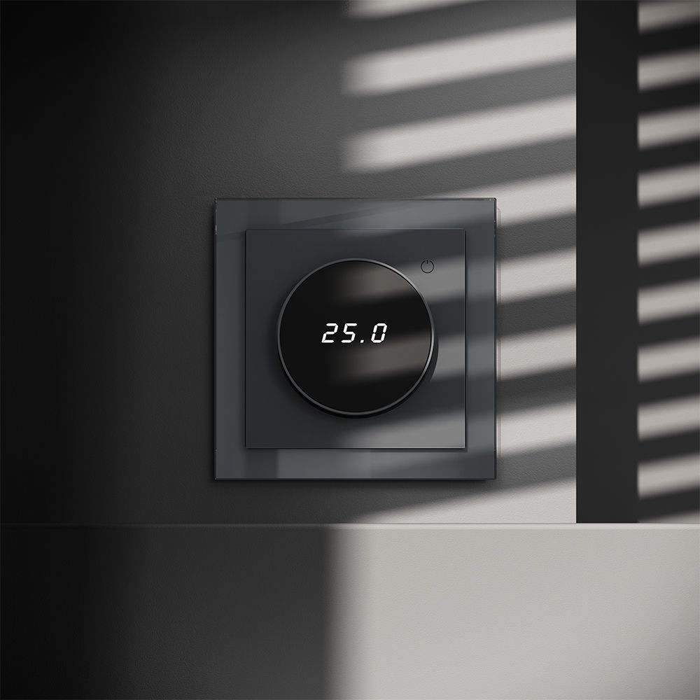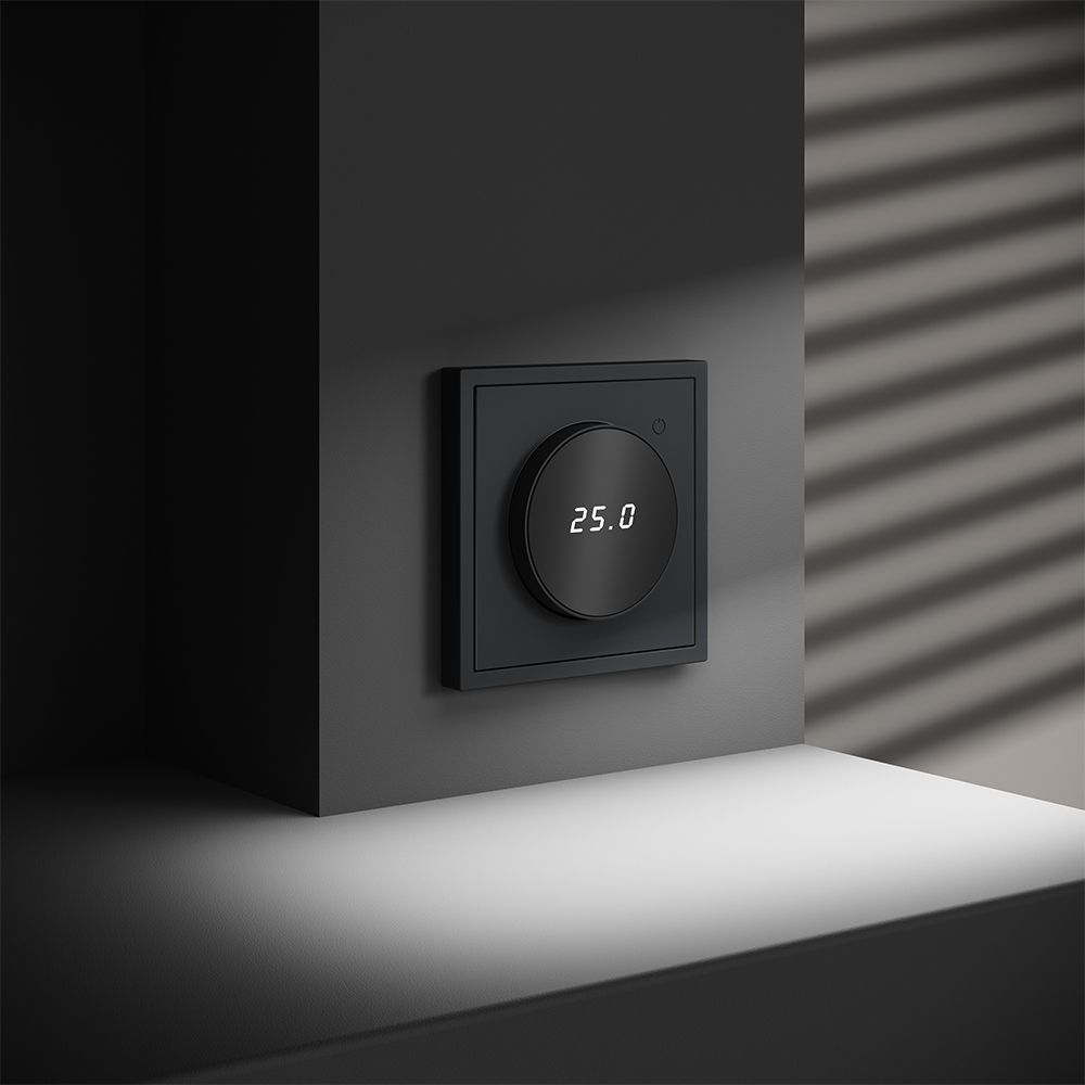 Терморегуляторы Voltum предназначены для регулирования температуры теплого пола. Актуальны как в городских квартирах, так и в загородных дачных домах без центрального отопления. Корпус. Дизайн терморегуляторов Voltum сочетается со стилем остальных электрических устройств компании. Они совместимы со всеми рамками. Материал внешних декоративных элементов — поликарбонат. Конструктивные особенности. Терморегуляторы работают с любыми типами теплых полов и рассчитаны на нагрузку до 3500 Вт. Устройства оснащены светодиодной индикацией режима и дисплеем, на котором отображается температура поверхности пола. Красный индикатор — «подача питания на нагревательный кабель (идет процесс нагрева)», отсутствие индикации — «заданная температура достигнута». В течение 15 минут после нагрева терморегулятор переходит в интеллектуальный «спящий режим», уменьшая яркость подсветки цифр и сокращая энергопотребление. Регулировка осуществляется вращением панели управления. Терморегулятор поставляется в комплекте с механизмом из пластиковой накладки и датчиком температуры.