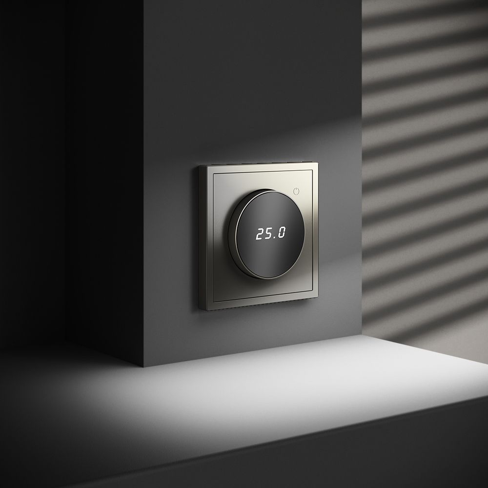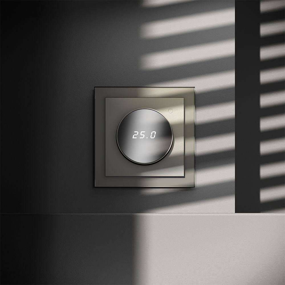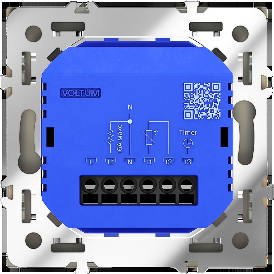 Терморегуляторы Voltum предназначены для регулирования температуры теплого пола. Актуальны как в городских квартирах, так и в загородных дачных домах без центрального отопления. Корпус. Дизайн терморегуляторов Voltum сочетается со стилем остальных электрических устройств компании. Они совместимы со всеми рамками. Материал внешних декоративных элементов — поликарбонат. Конструктивные особенности. Терморегуляторы работают с любыми типами теплых полов и рассчитаны на нагрузку до 3500 Вт. Устройства оснащены светодиодной индикацией режима и дисплеем, на котором отображается температура поверхности пола. Красный индикатор — «подача питания на нагревательный кабель (идет процесс нагрева)», отсутствие индикации — «заданная температура достигнута». В течение 15 минут после нагрева терморегулятор переходит в интеллектуальный «спящий режим», уменьшая яркость подсветки цифр и сокращая энергопотребление. Регулировка осуществляется вращением панели управления. Терморегулятор поставляется в комплекте с механизмом из пластиковой накладки и датчиком температуры.
