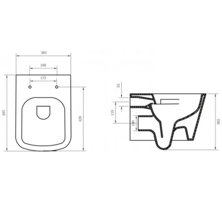Унитаз подвесной безободковый Cezares (Цезарис) Stylus с сиденьем CZR-513-TH-R/CZR-2316-SC