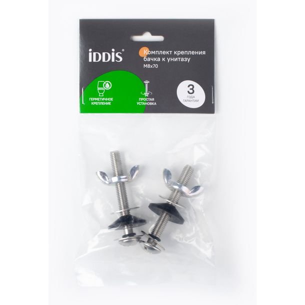 Доставка Комплект крепления бачка к унитазу Iddis (Иддис), нержавеющая сталь, 2 шт, M8x70, 907M8702SK из Москва в районы и города ЮВАО, ЮЗАО, ЮАО, Новомосковский АО, Одинцово, Подольск, Щербинка, Троицк, Строительный рынок Славянский мир, 41-й км МКАД, бывшая Мельница, Красногорск, Домодедово, Тёплый стан, Коммунарка, Мосрентген, Видное, Мамыри, Краснознаменск
