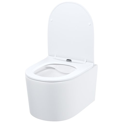 Унитаз подвесной безободковый с сиденьем из дюропласта с EasyFix и SoftClose. Округлая форма чаши. Крепления в комплекте. Размер 490х365х370 мм (ДхШхВ). Упаковка: картонная коробка.
