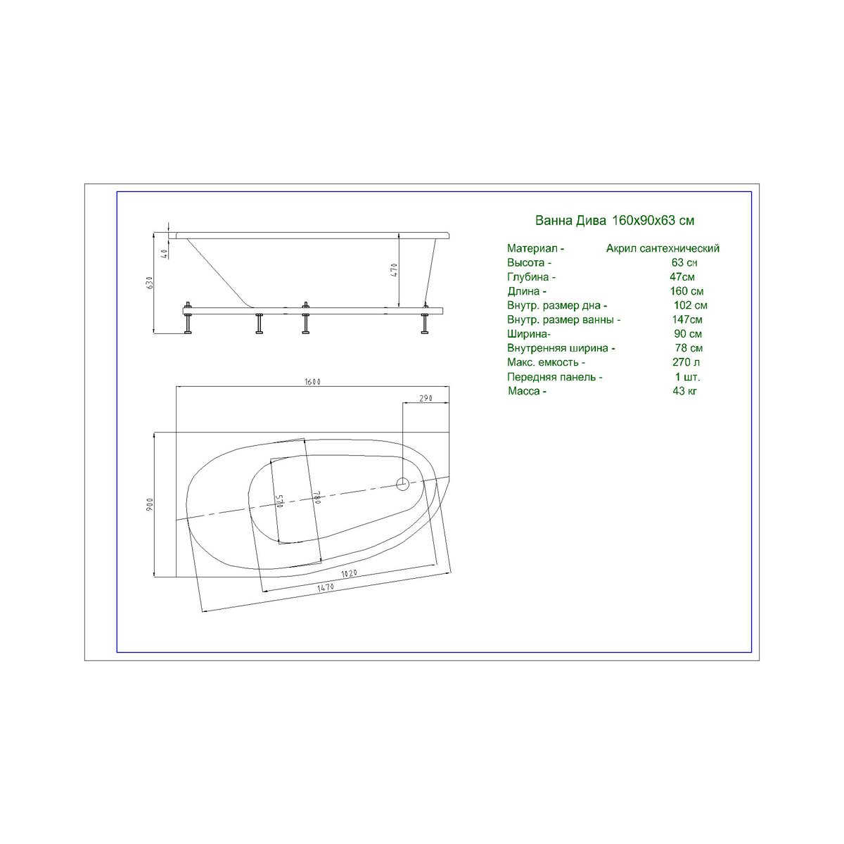 Используемые при создании асимметричных ванн 160х75 или 160х90 Дива современные материалы не только максимально облегчают конструкцию и упрощают процесс установки, но и гарантируют удобство и безопасность. Материал имеет слабую теплопроводность и долго удерживает заданную температуру воды, без предварительного прогревания (как это делается в чугунной или стальной модели).