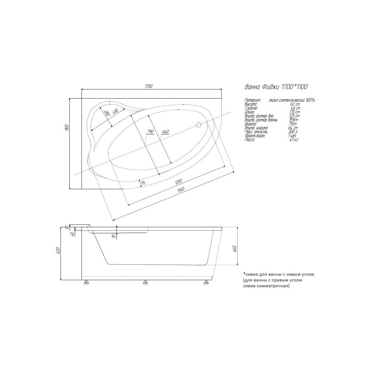Ванна акриловая Aquatek (Акватек) Фиджи 170х110 см правая FID170-0000002 Белый