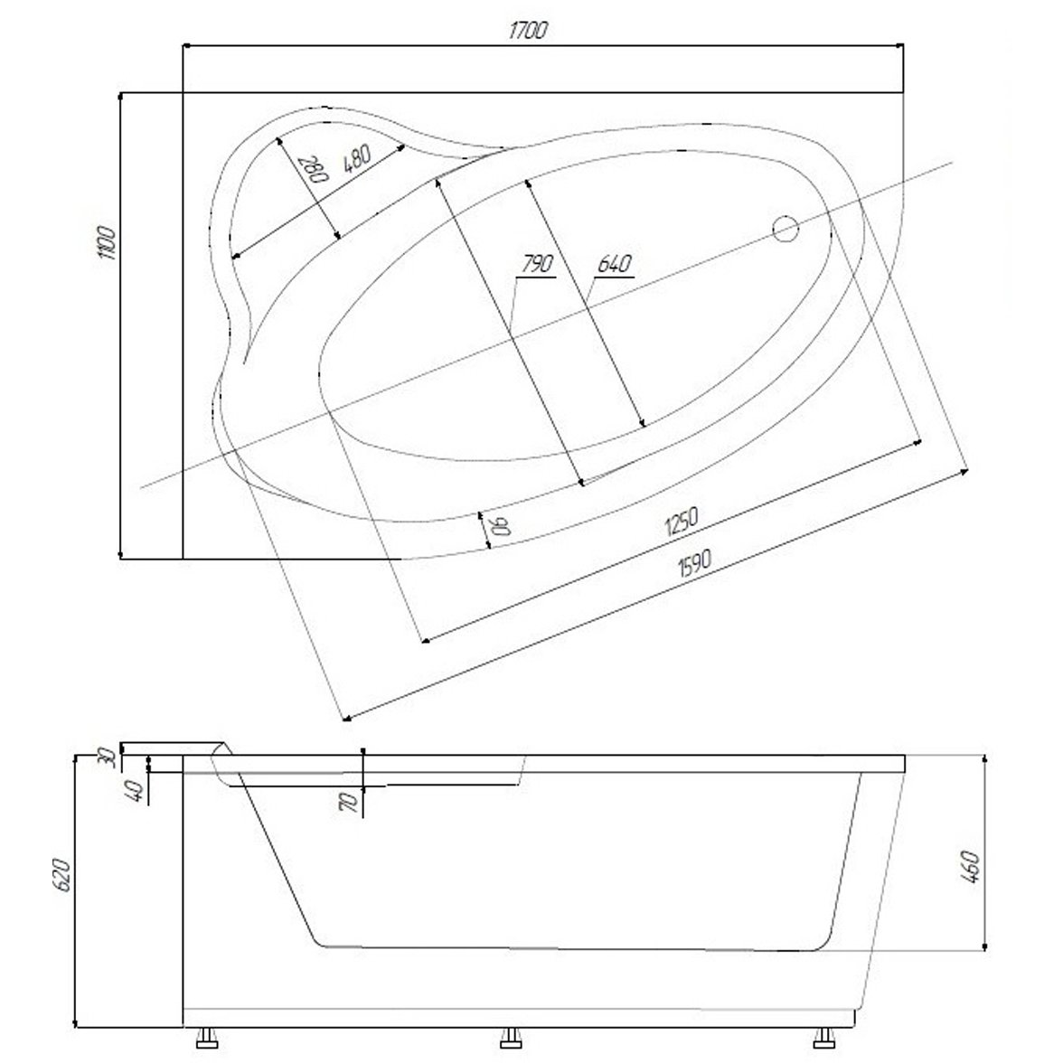 Ванна акриловая AZARIO LAURA асимметричная 1700х1100, левосторонняя/правосторонняя