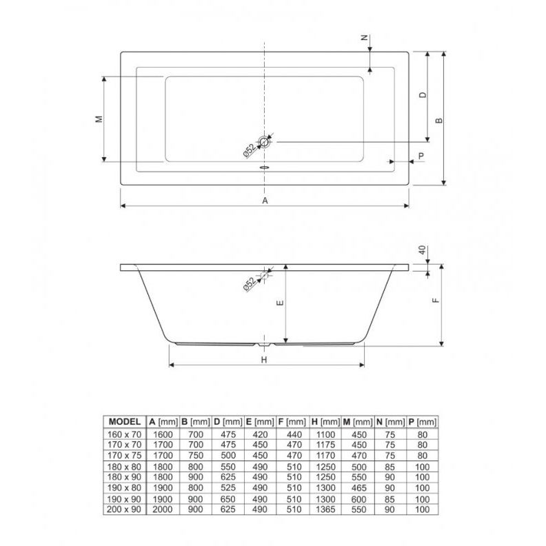 Ванна акриловая Метакам (Metakam) Light 1700x700 мм (авs_011277)