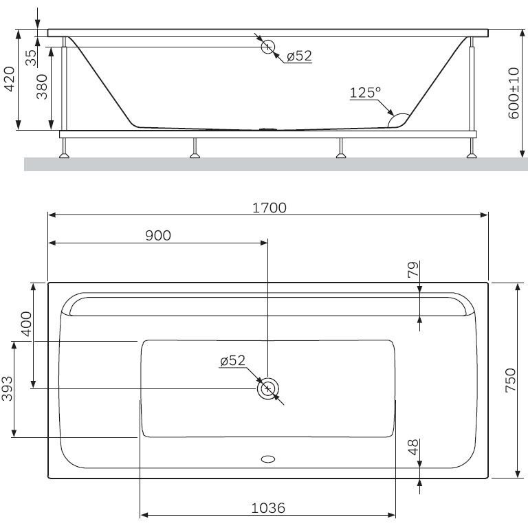 Ванна акриловая Метакам (Metakam) Grace 1700x700 мм (авs_013095)