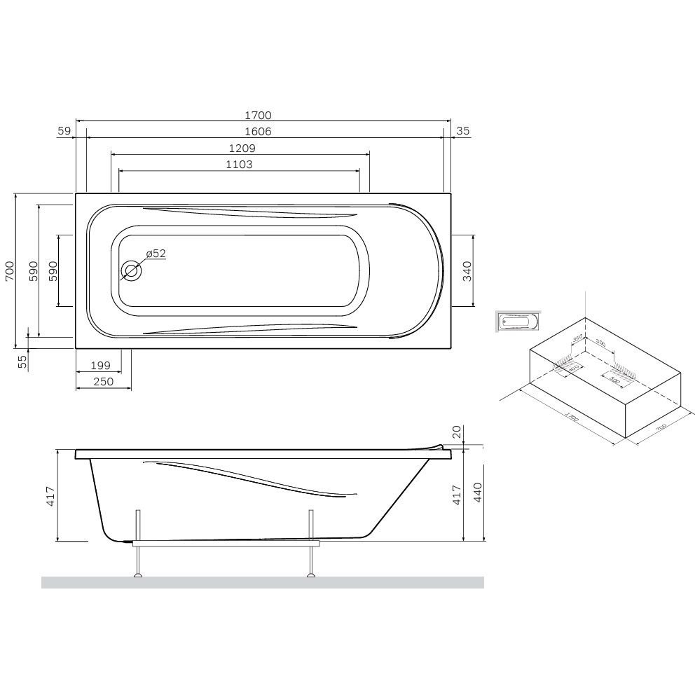 Ванна акриловая Метакам (Metakam) Light 1700x700 мм (авs_011277)