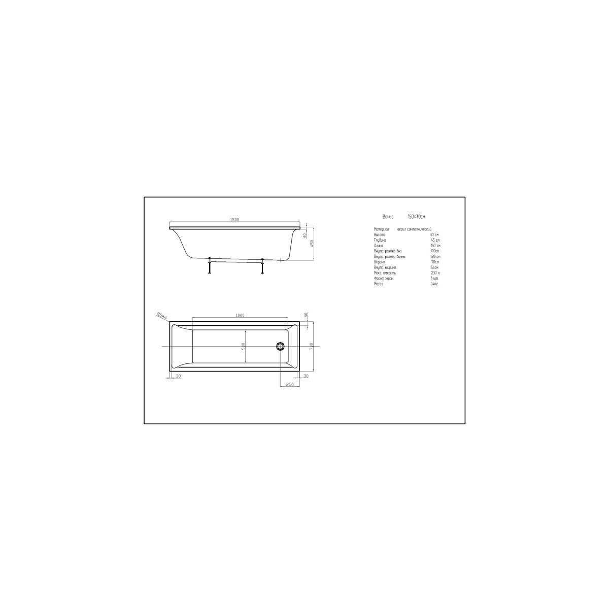 Ванна акриловая Aquatek (Акватек) Лайма прямоугольная 150х70 см LAI150-0000001 Белый