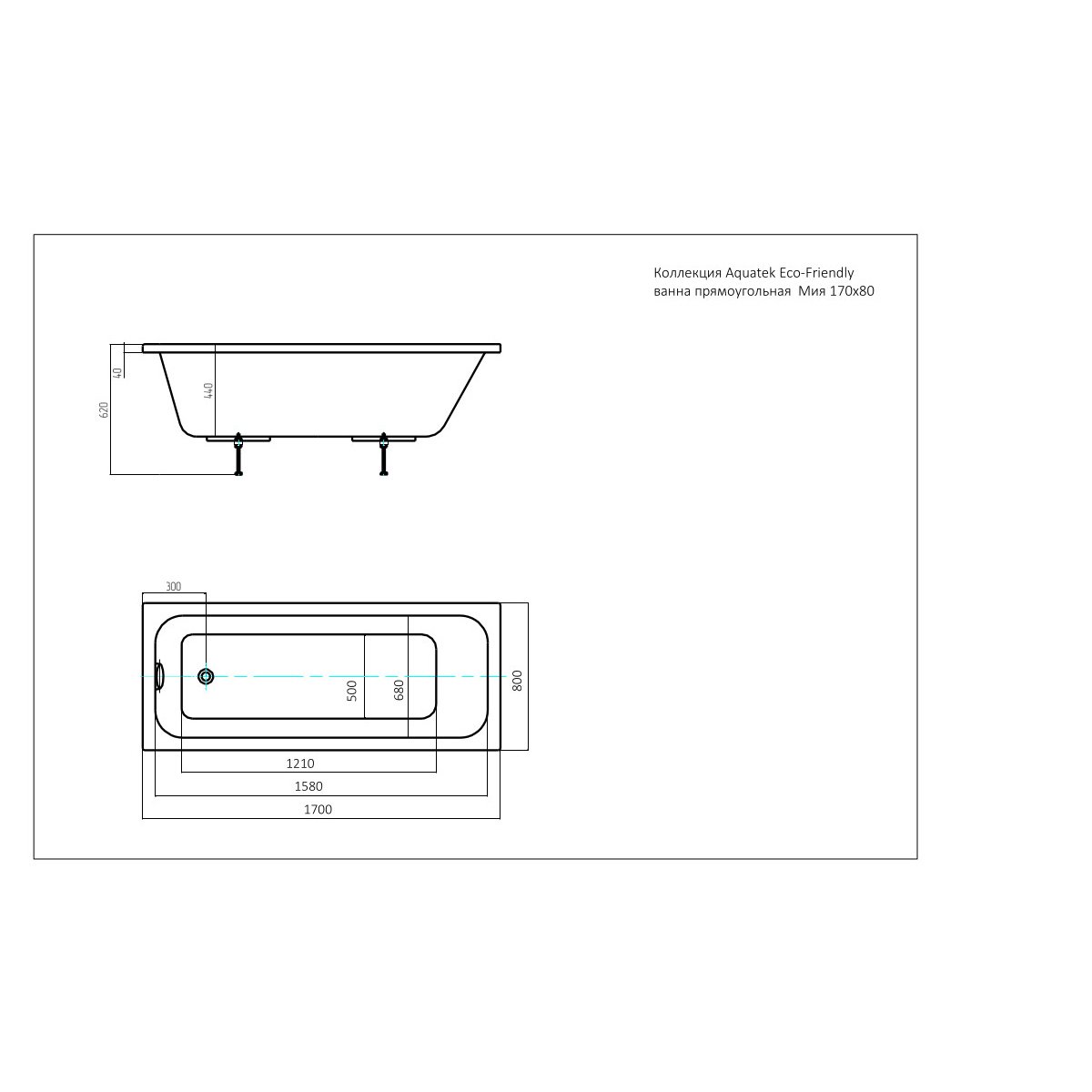 Ванна акриловая Aquatek (Акватек) Мия прямоугольная 170х80 см MIY170-0000032 Белый