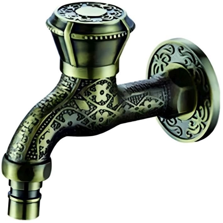 ViEiR Кран с носиком ретро (короткий) декор/бронза темная (VR324). Кран отличается высокими эксплуатационными и качественными показателями. Кран снабжен удобной стильной рукояткой-вентилем в старинном стиле и используется для установки в виде запорной арматуры. Изделие имеет умеренный запас прочностных характеристик за счет изготовления корпуса по технологии горячей штамповки. Рекомендуется устанавливать в систему с давлением до 6 бар.