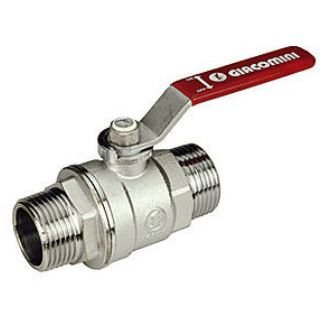 Кран шаровой, резьба наружная/наружная, стандартный проход, хромированный, ручка - рычаг красный.