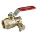 Кран шаровой, резьба внутренняя/внутренняя, стандартный проход, хромированный, ручка - рычаг красный, со сливом.