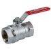 Кран шаровой, резьба внутренняя/внутренняя, стандартный проход, хромированный, ручка - рычаг красный.