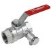 Кран шаровой, резьба внутренняя/внутренняя, стандартный проход, хромированный, ручка - рычаг красный, со сливом.