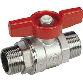 Кран шаровой, резьба наружная/наружная, стандартный проход, хромированный, ручка - бабочка красная.