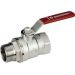 Кран шаровой, резьба внутренняя/наружная, стандартный проход, хромированный, ручка - рычаг красный.