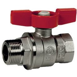 Кран шаровой полнопроходной, резьба внутренняя/наружная, хромированный, ручка - бабочка красная.