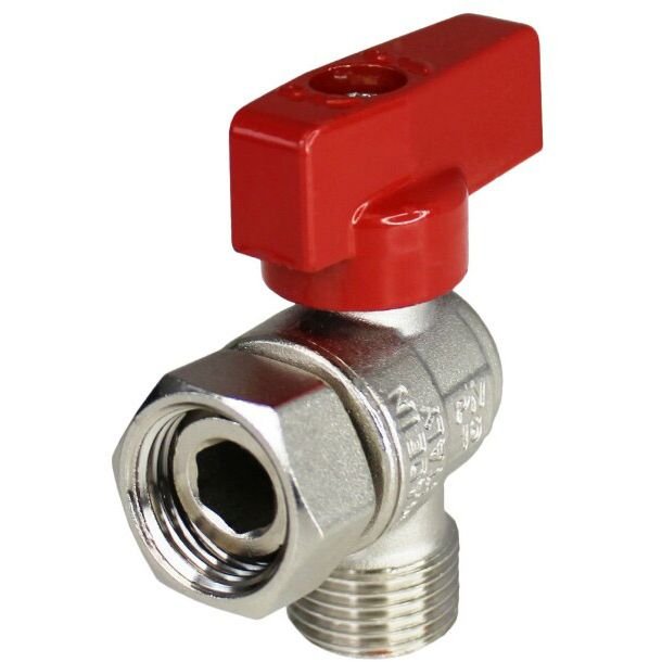 Кран шаровой Elsen (Элсен) , угловой, 3/4″, 3/4″, НВ, ручка-флажок красная, с НГ
