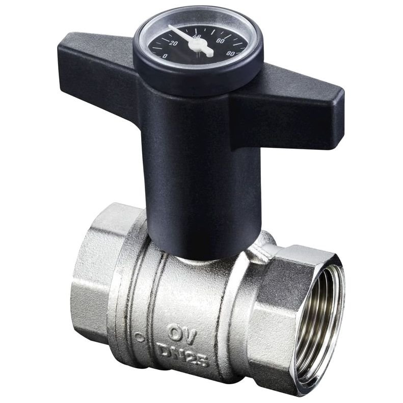 Кран шаровый Oventrop (Овентроп) Optibal полнопроходной, с термометром маховик пластмассовый Kvs 67 DN 25, 1 дюйм ВР-ВР (1078008)