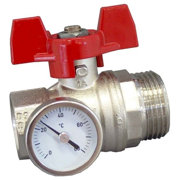 Кран шаровый Oventrop (Овентроп) с плоским уплотнением, термометр красный маховик ВР-НР DN 20, G 3/4 x 1 дюйм (1406483)