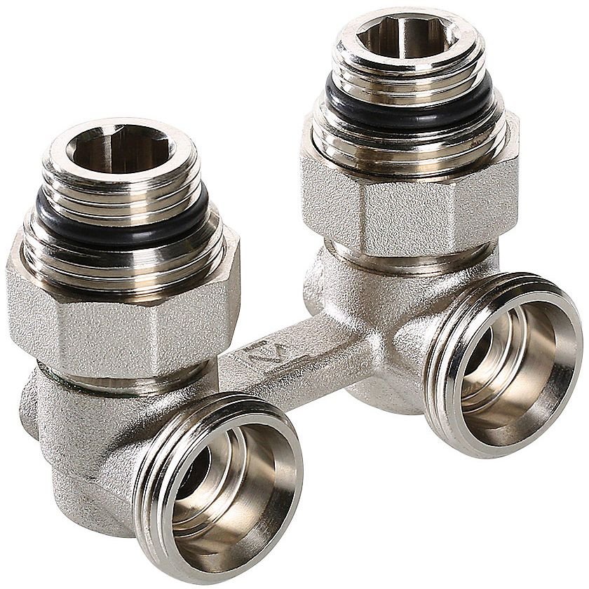 Особенность узла – угловое расположение относительно друг друга патрубков присоединения к отопительному прибору и трубной разводке. Это, в частности, упрощает так называемое тыльное подключение отопительного прибора – при скрытых в стене подводящих трубах.